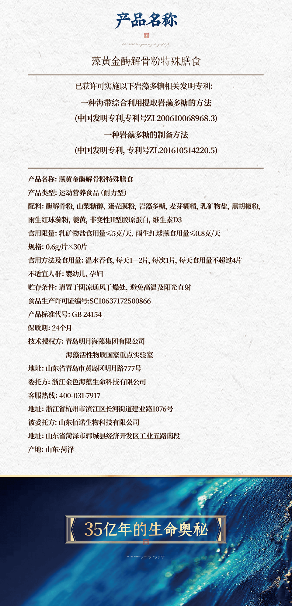 > 藻黄金酶解骨粉特殊膳食